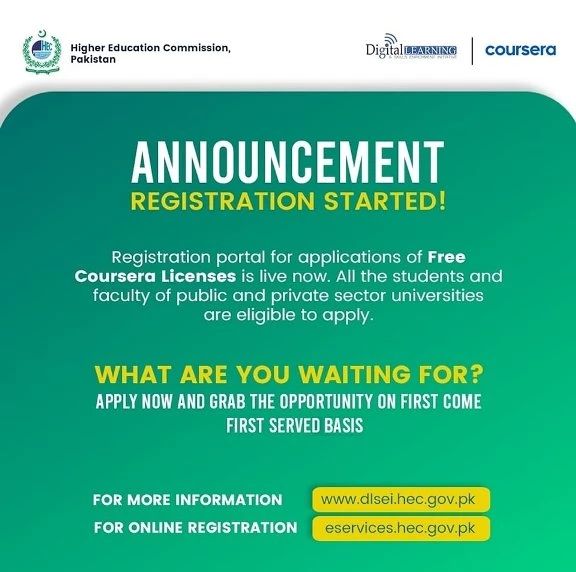 HEC (Higher Education Commission) has partnered with Coursera to provide free licenses to students… Here’s how you can get one: