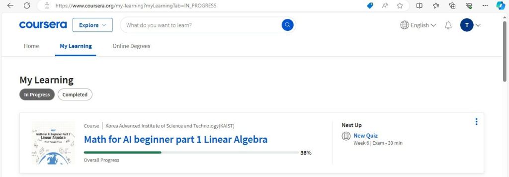 Add some details to your profile like your interests and career goals… This helps Coursera recommend courses tailored for you…